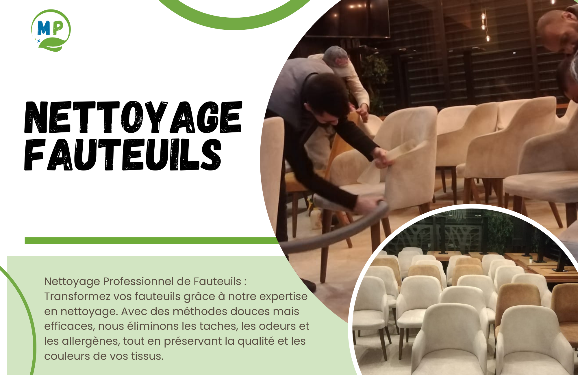 Elimination des tâches assuré, quelque soit leur origine (végétale, organique ou chimique).