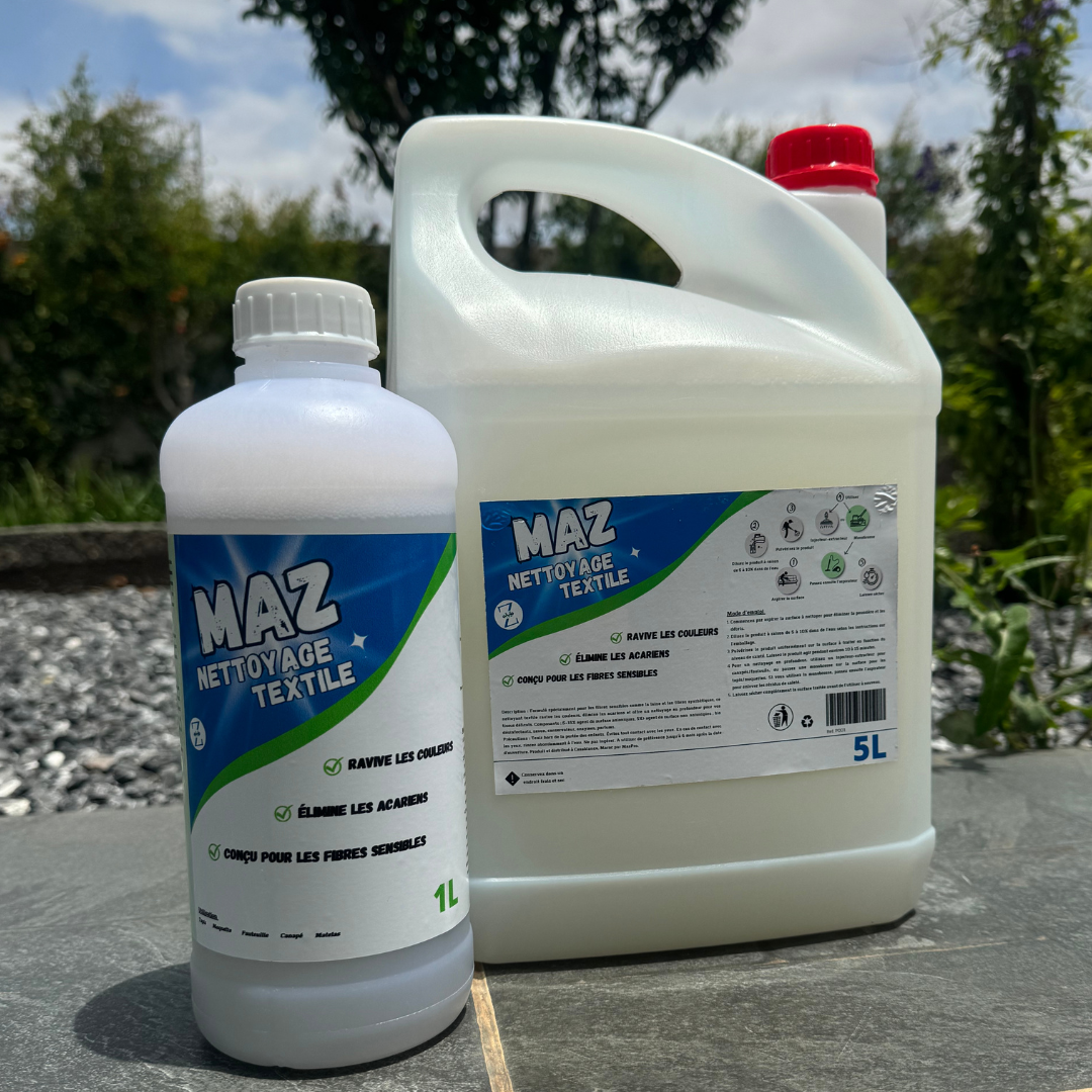 Dites adieu aux taches tenaces, aux couleurs ternes et aux tissus rêches grâce à notre nettoyant textile spécialement conçu pour les fibres les plus délicates. Notre formule unique pénètre en profondeur pour éliminer la saleté, la poussière et les allergènes, tout en ravivant les couleurs et en laissant vos tissus doux et frais.